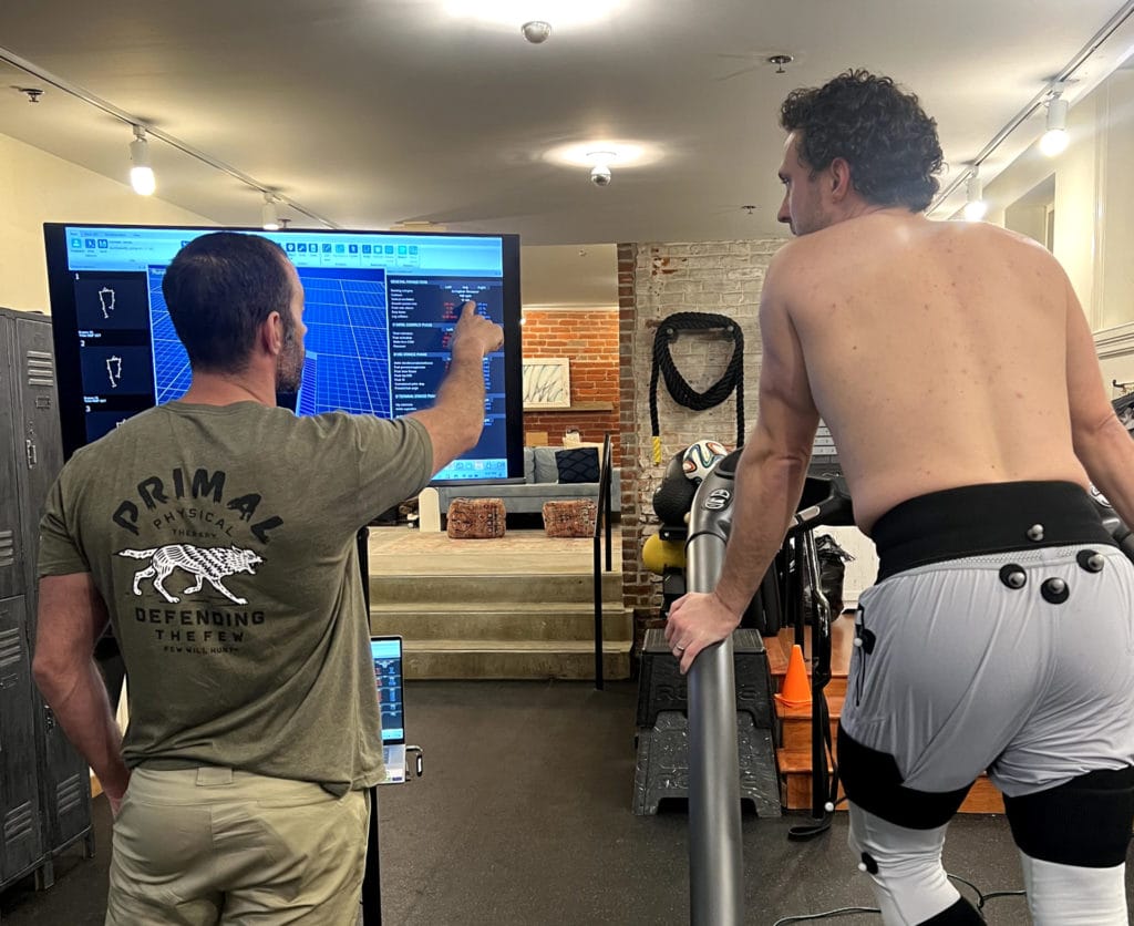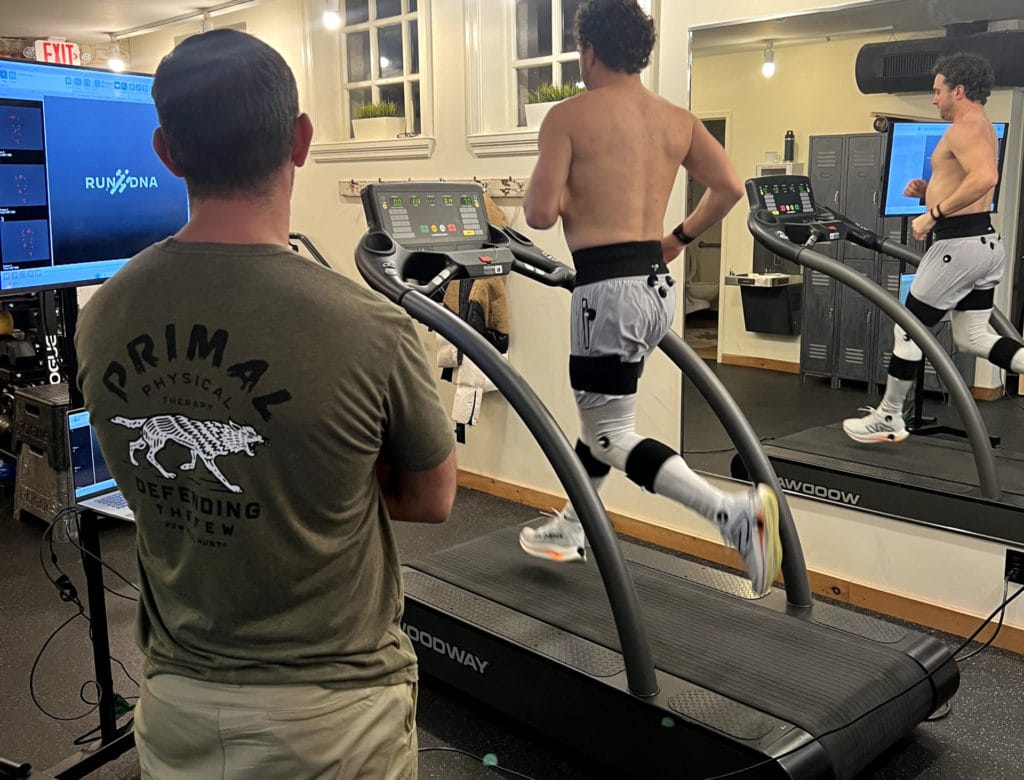 Perform a movement assessment: Here, we identify any deficits that might be present anywhere in the kinetic chain. This component is a must for clinicians at Primal, as treating and training the body as a system is paramount in our method. This part of the evaluation helps us “flag” any mobility or stability deficits that might be contributing to the gait deviations we may or may not find in the running specific portion of the eval.
