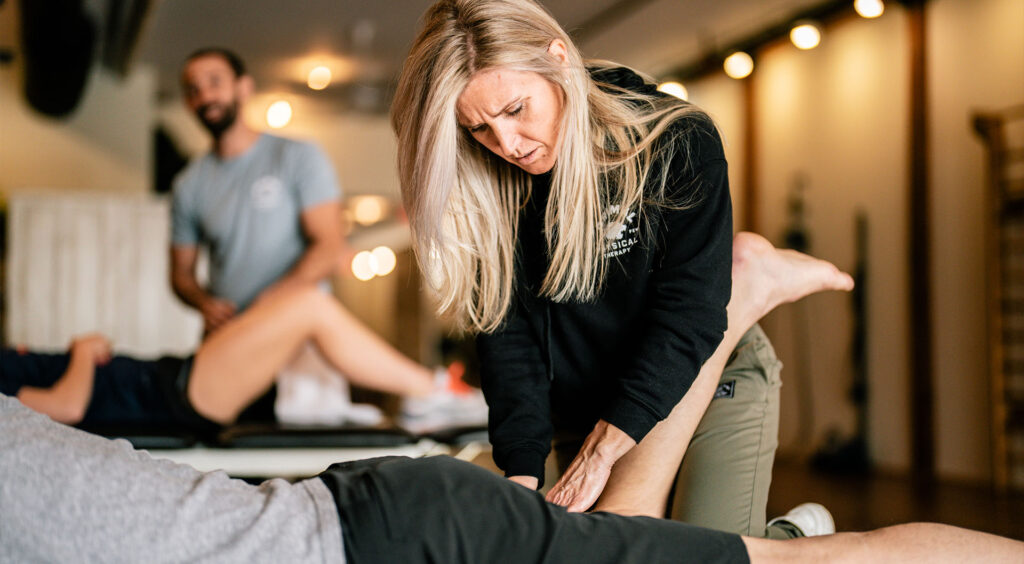 Your journey with us begins with a comprehensive initial evaluation where we take the time to understand your injury, athletic background, and recovery goals. During this session, our Bryn Mawr physical therapist will perform detailed movement assessments and explain their findings in terms you can understand, making sure you’re fully informed about your condition and treatment options. Our detailed movement assessment head to toe helps us determine all movement pattern limitations that may be the “root” cause of pain and movement dysfunction.